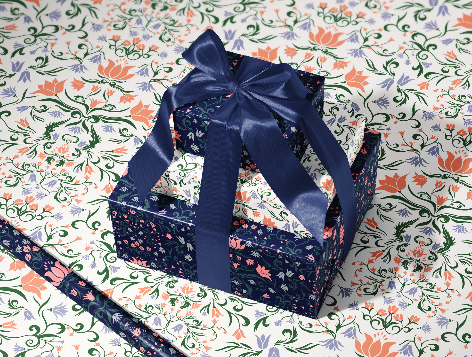 Bring a bold yet elegant botanical touch to your gifts with our Bloom & Bell wrapping paper.