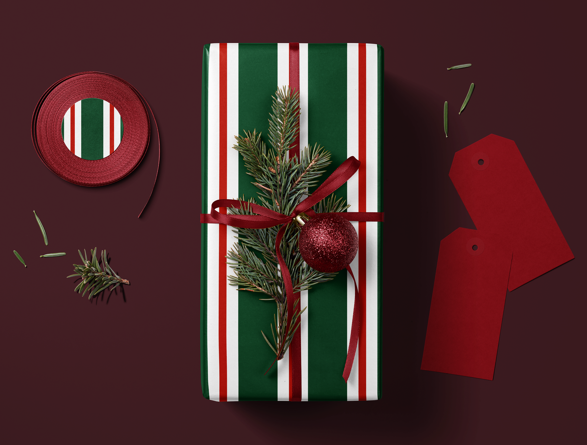Wrap your gifts in timeless style with our Christmas Retro Stripes Wrapping Paper, featuring vintage green, red, and white holiday stripes printed on high-quality, premium gift wrap.