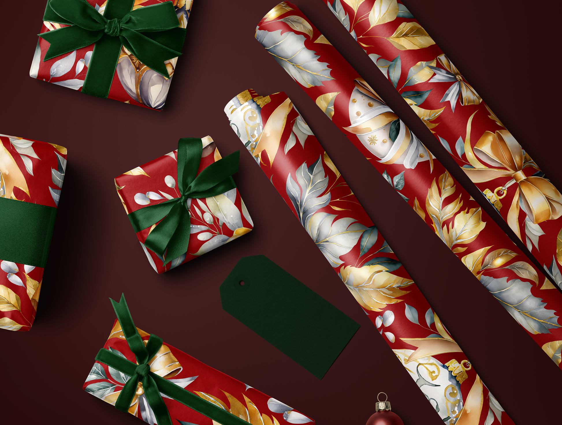 Christmas Wrapping Paper Celebrate the holidays with our Holiday Splendor wrapping paper — a delicate blend of festive charm and timeless elegance.